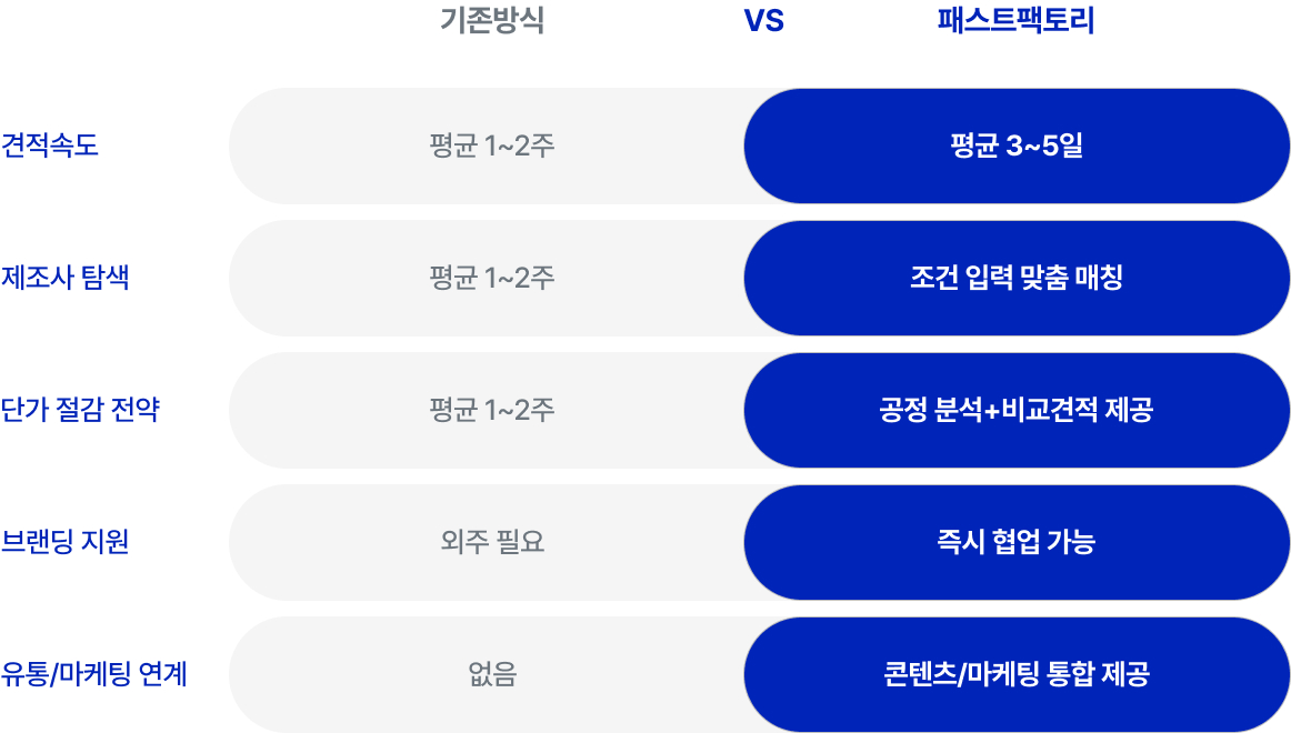 단순한 제조 매칭을 넘어서, 브랜드 실행 전체를 지원합니다.